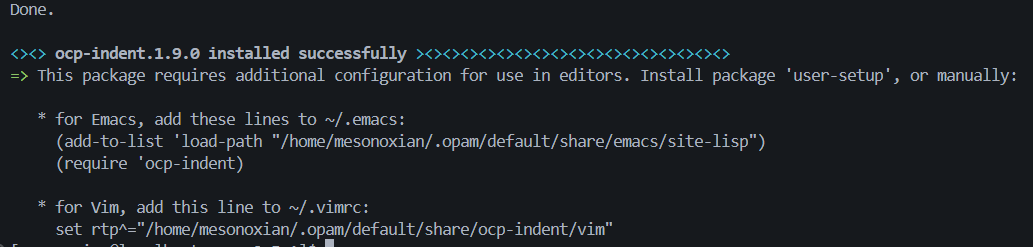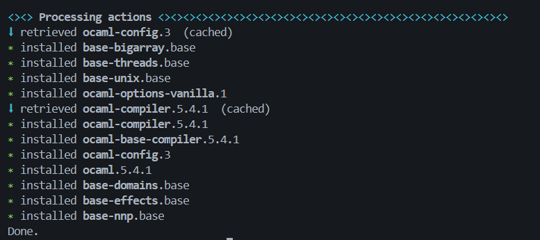 出现如下提示说明opam环境初始化,并且已经成功安装了最新版本的ocaml-complier: