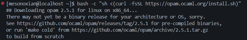 bash -c "sh <(curl -fsSL https://opam.ocaml.org/install.sh)"