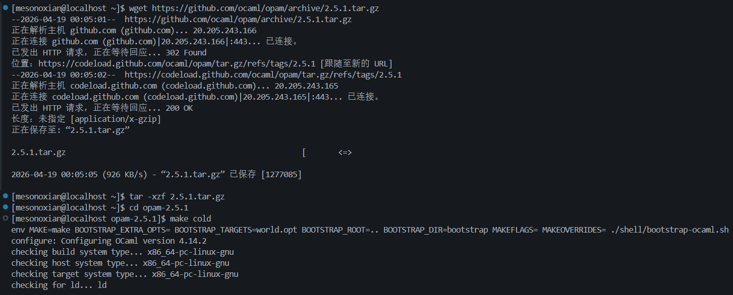 我们首先按照ocaml官网给出的步骤安装opam与ocaml: